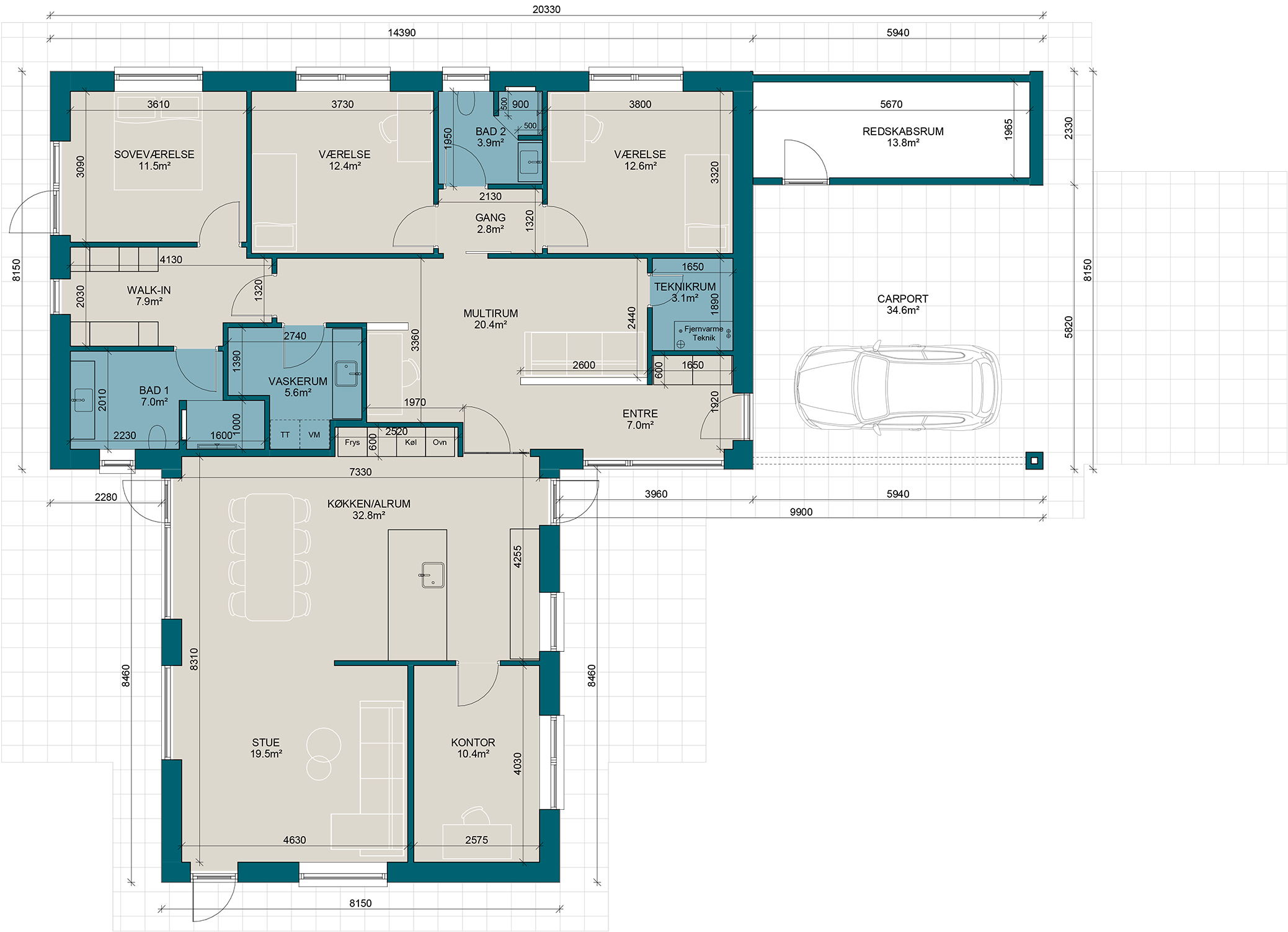 - Gulve: Akustik designkork Montana Oak m. TimberPro