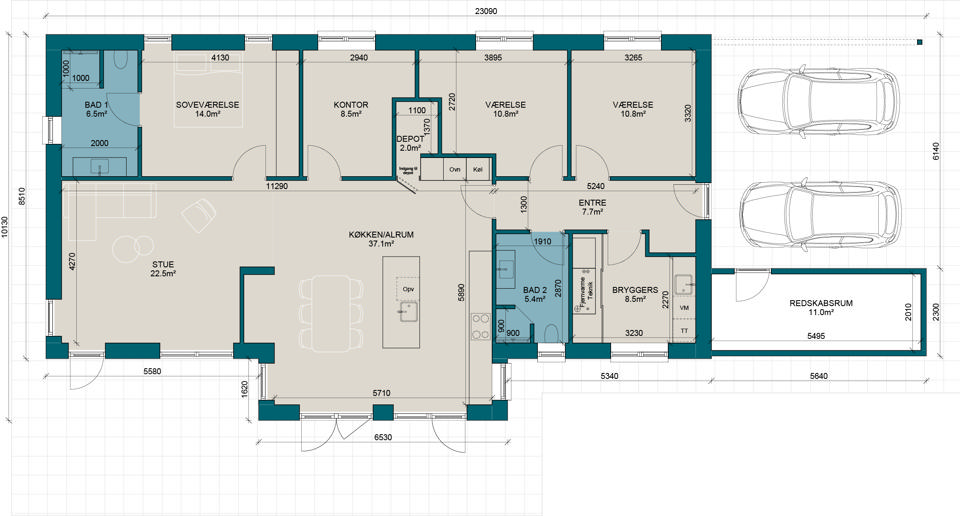 Hvordan ser dit drømmehus ud? Alle vil bo som ingen andre, men de fleste vil gerne have inspiration. Udforsk vores mange plantegninger, eller skitser din egen i vores tegneprogram.