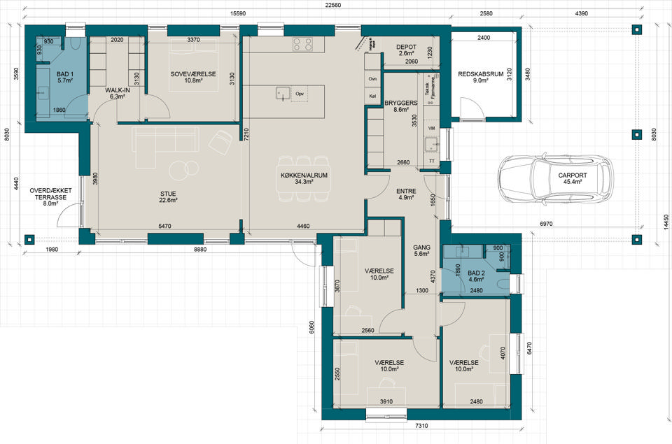 FV165-2 | Plantegning til nybyg | Milton Huse