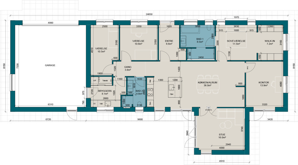 FV165-6 | Plantegning til nybyg | Milton Huse