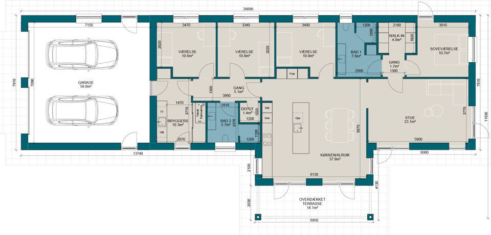 FV166-2 | Plantegning til nybyg | Milton Huse