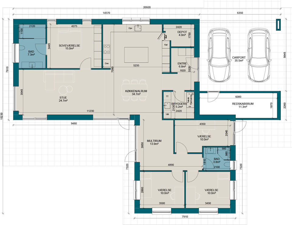 Hvordan ser dit drømmehus ud? Alle vil bo som ingen andre, men de fleste vil gerne have inspiration. Udforsk vores mange plantegninger, eller skitser din egen i vores tegneprogram.