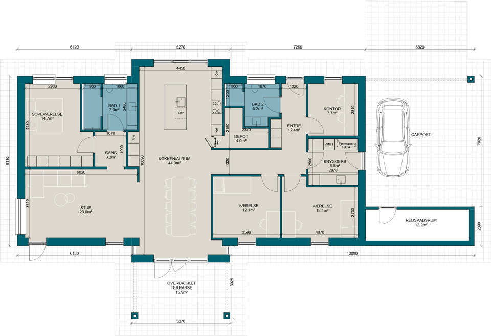 FV179-3 | Plantegning til nybyg | Milton Huse
