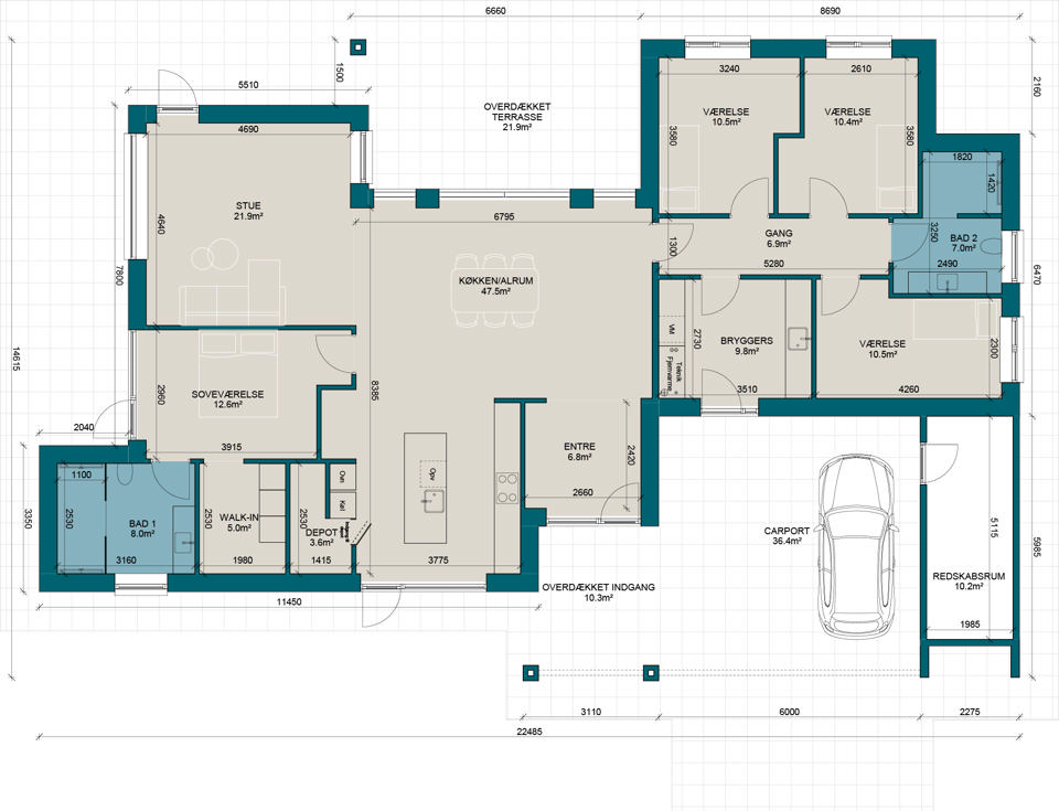 Hvordan ser dit drømmehus ud? Alle vil bo som ingen andre, men de fleste vil gerne have inspiration. Udforsk vores mange plantegninger, eller skitser din egen i vores tegneprogram.