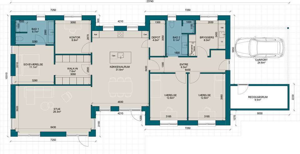 H173 | Plantegning til nybyg | Milton Huse