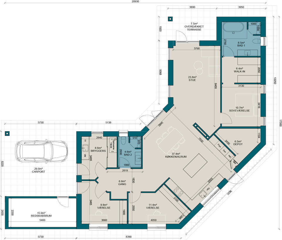 Hvordan ser dit drømmehus ud? Alle vil bo som ingen andre, men de fleste vil gerne have inspiration. Udforsk vores mange plantegninger, eller skitser din egen i vores tegneprogram.