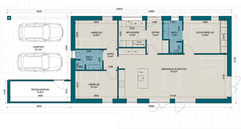 Hvordan ser dit drømmehus ud? Alle vil bo som ingen andre, men de fleste vil gerne have inspiration. Udforsk vores mange plantegninger, eller skitser din egen i vores tegneprogram.
