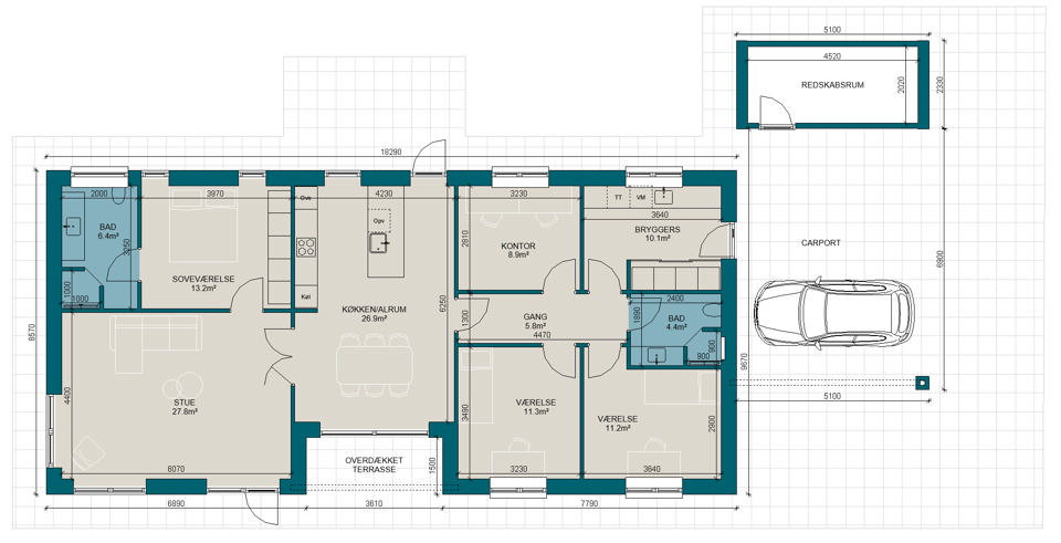 Hvordan ser dit drømmehus ud? Alle vil bo som ingen andre, men de fleste vil gerne have inspiration. Udforsk vores mange plantegninger, eller skitser din egen i vores tegneprogram.