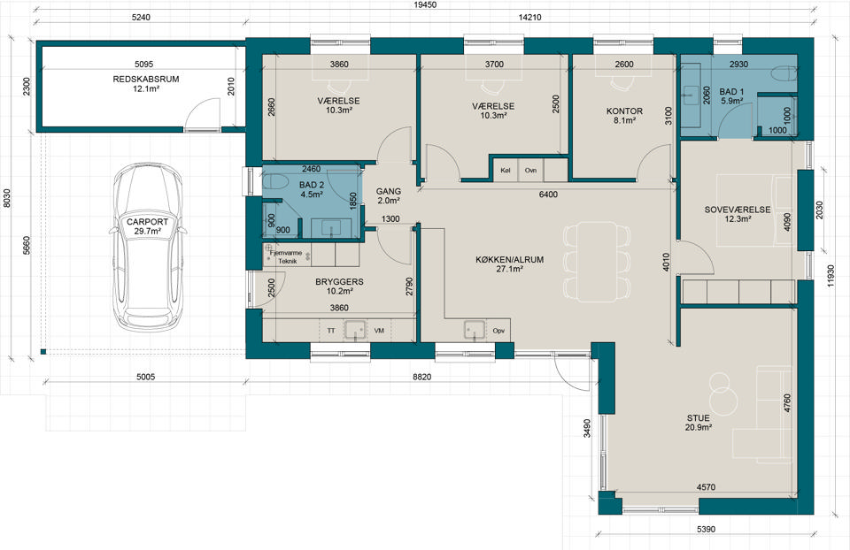 V135-2 | Plantegning til nybyg | Milton Huse