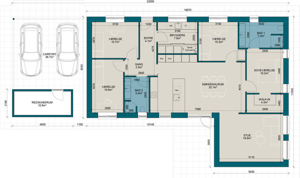 Hvordan ser dit drømmehus ud? Alle vil bo som ingen andre, men de fleste vil gerne have inspiration. Udforsk vores mange plantegninger, eller skitser din egen i vores tegneprogram.