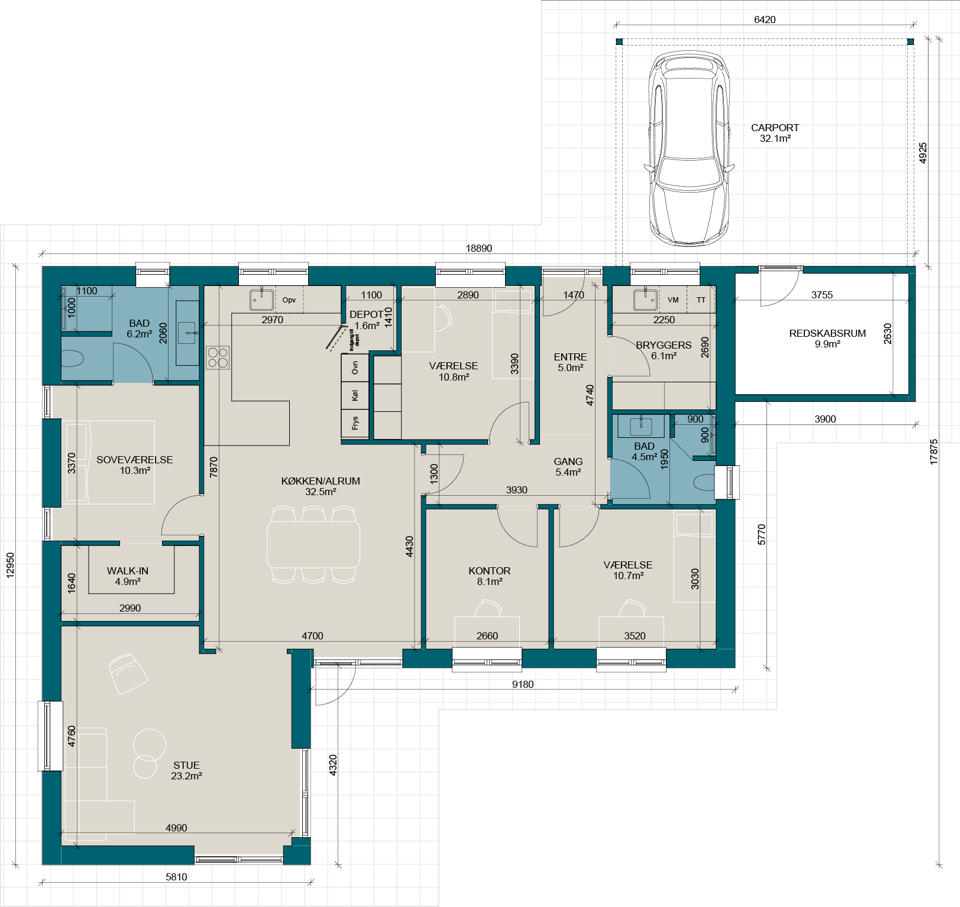 V155 | Plantegning til nybyg | Milton Huse