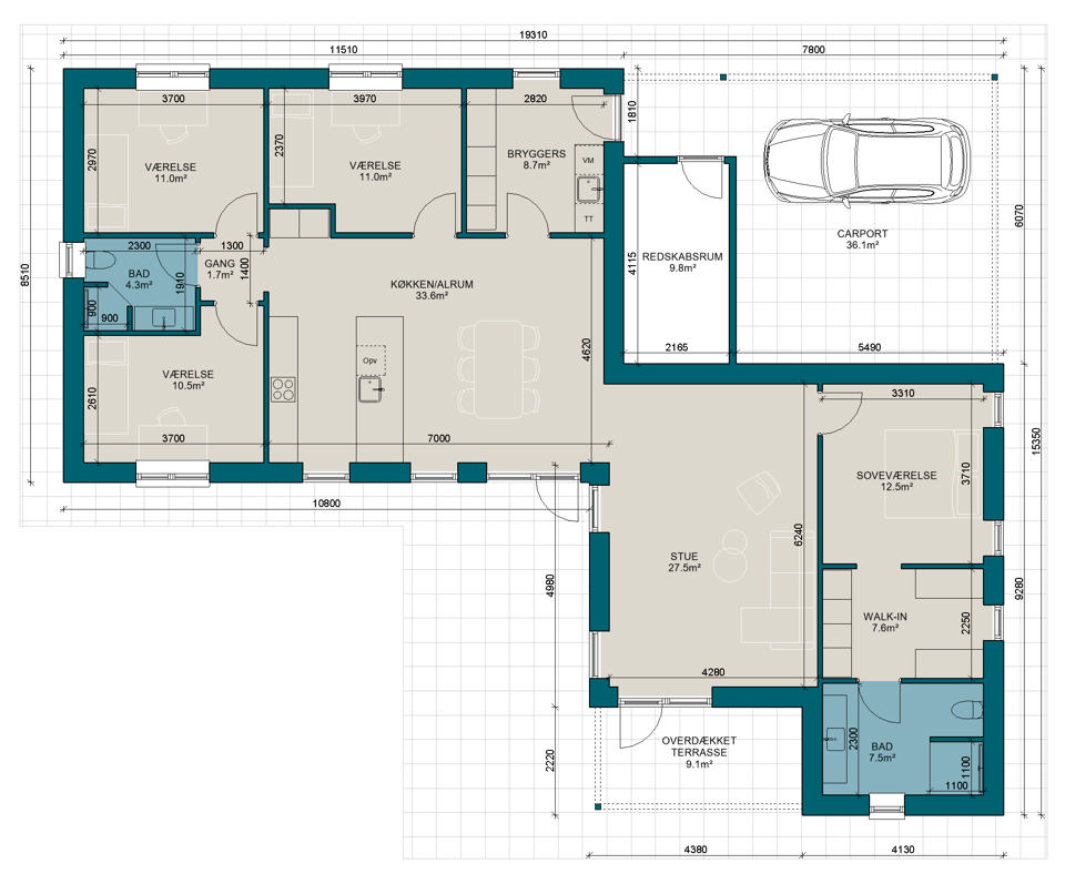 V165-4 | Plantegning til nybyg | Milton Huse