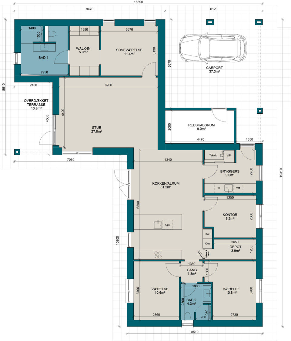 V166-2 | Plantegning til nybyg | Milton Huse