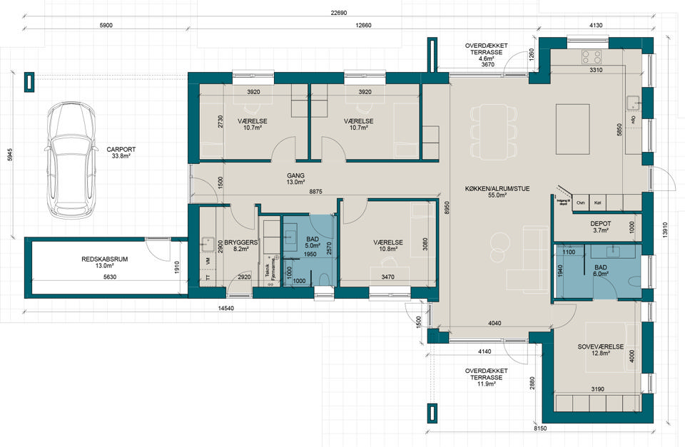 Hvordan ser dit drømmehus ud? Alle vil bo som ingen andre, men de fleste vil gerne have inspiration. Udforsk vores mange plantegninger, eller skitser din egen i vores tegneprogram.