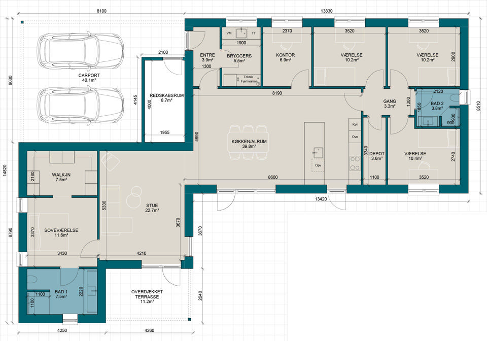 V180-4 | Plantegning til nybyg | Milton Huse