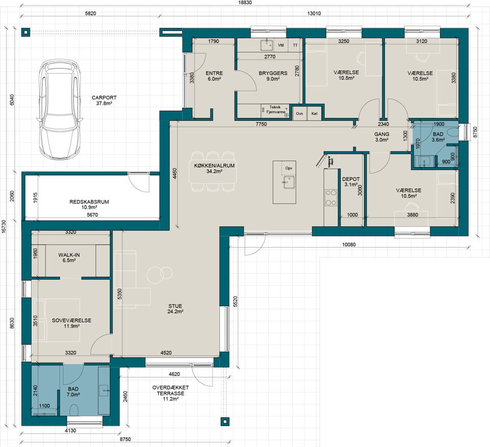 V173 | Plantegning til nybyg | Milton Huse