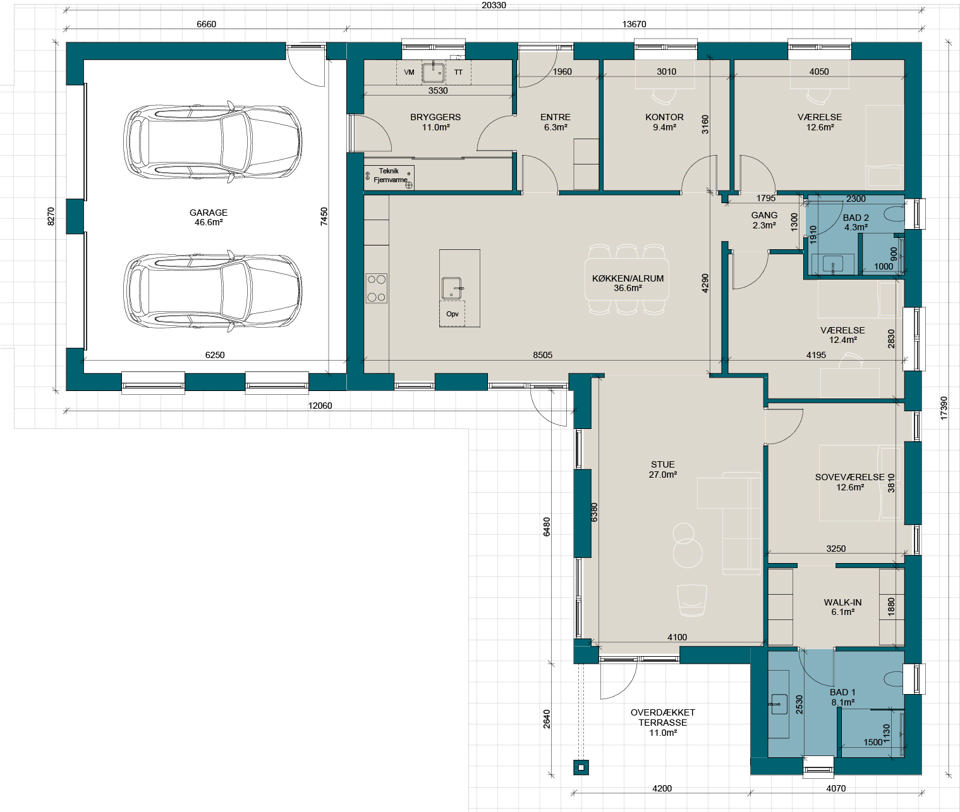 Hvordan ser dit drømmehus ud? Alle vil bo som ingen andre, men de fleste vil gerne have inspiration. Udforsk vores mange plantegninger, eller skitser din egen i vores tegneprogram.
