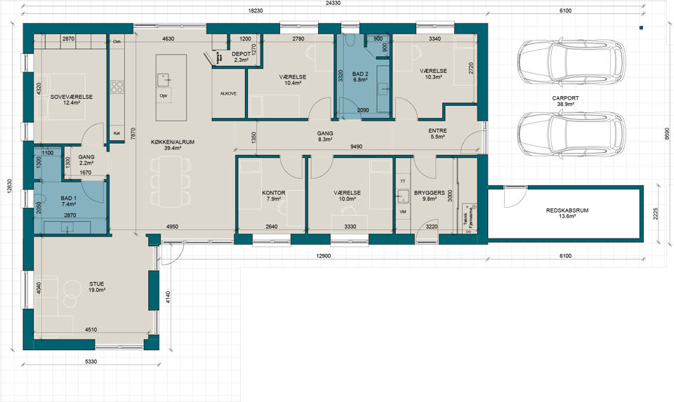 Hvordan ser dit drømmehus ud? Alle vil bo som ingen andre, men de fleste vil gerne have inspiration. Udforsk vores mange plantegninger, eller skitser din egen i vores tegneprogram.