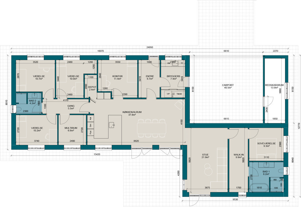 Hvordan ser dit drømmehus ud? Alle vil bo som ingen andre, men de fleste vil gerne have inspiration. Udforsk vores mange plantegninger, eller skitser din egen i vores tegneprogram.