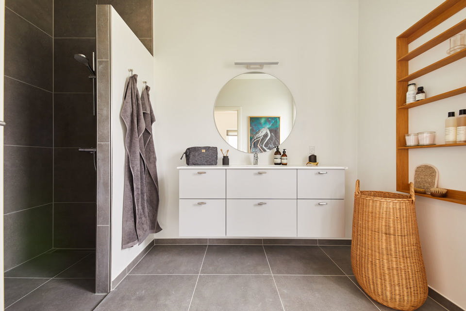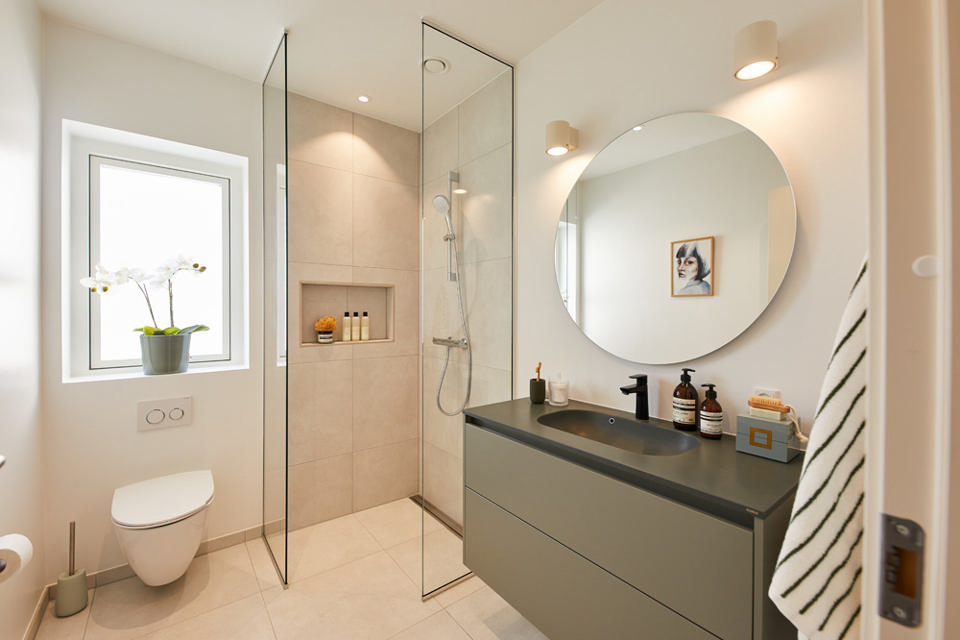 Badeværelset er ikke bare et rum for lukkede døre. Det er også her, dagen starter. Derfor gør stadig flere nybyggere meget ud af indretningen og vælger for eksempel at lade en rød tråd løbe fra resten af husets indretning og ud i badeværelset.