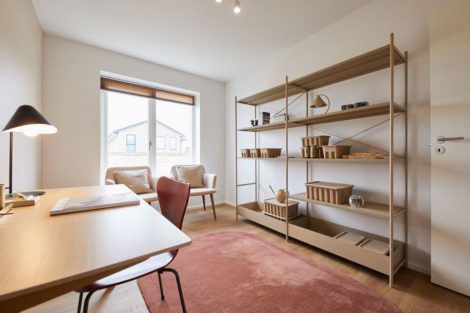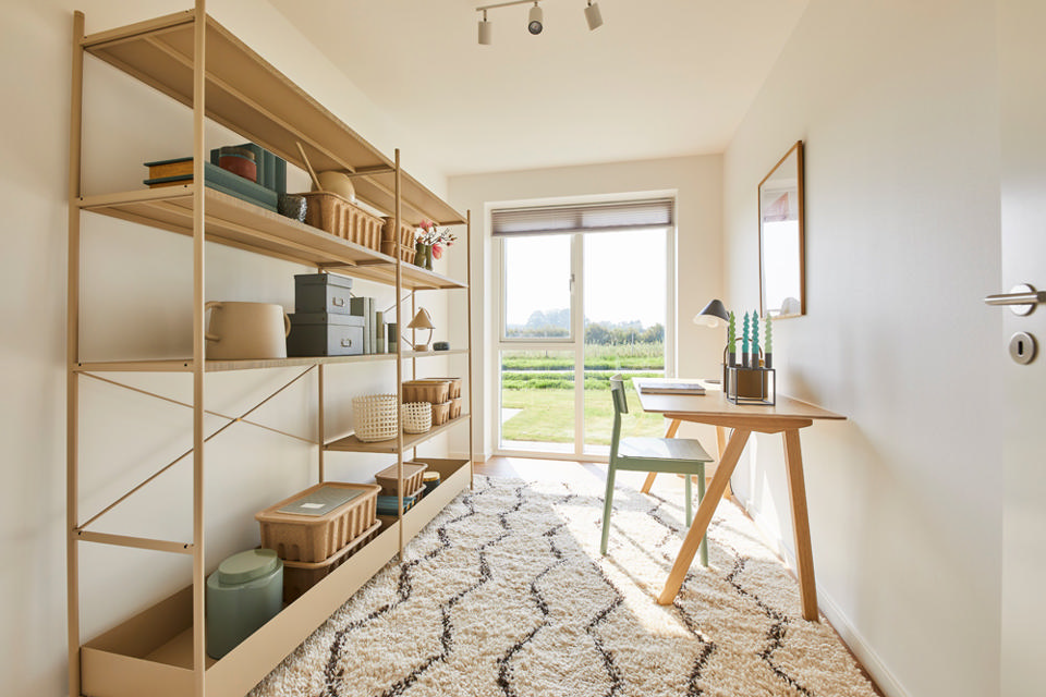 Nogle løsninger kunne være en reol med billeder af familien, nipsting i vindueskarmen eller rare bløde gulvtæpper under skrivebordet. Selvom det er et arbejdsrum, må det jo godt være hyggeligt.