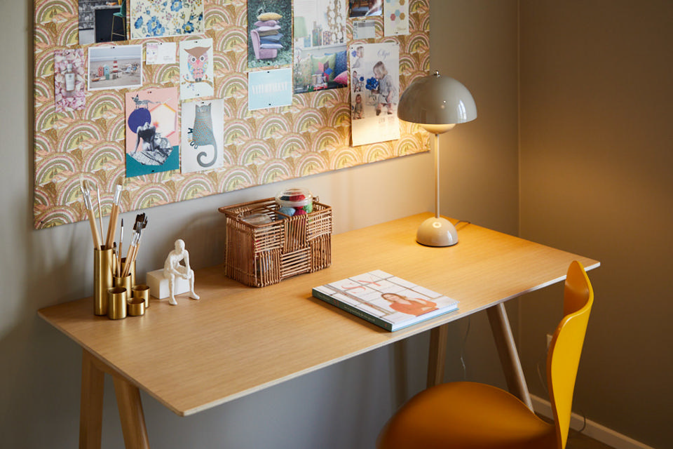 Et hyggeligt kontor indrettet med stil og personlighed