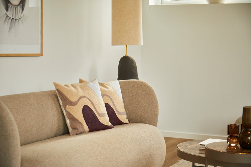 Omfavn din stue med alt det, du holder af. Lad din personlighed skinne igennem og indret stuen, så den inviterer til det, vi danskere er verdensmestre i: Hygge. Vælg en neutral sofa og lad fx puder give rummet kulør. Det er også billigere at skifte en pude end en hel sofa, når du får lyst til et nyt udtryk i stuen.