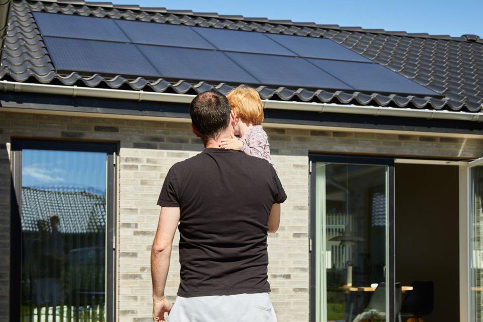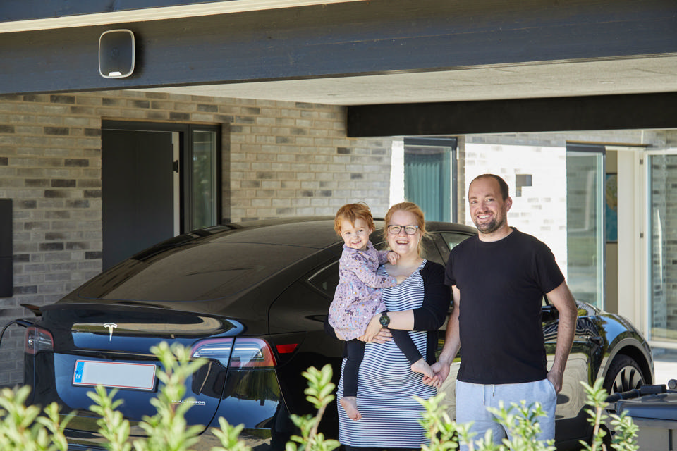I april flyttede parret og deres treårige datter fra en lejlighed på gågaden i Aalborg til et nybygget hus tæt ved skoven i stationsbyen Svenstrup. Theis arbejdede på det tidspunkt hos Tesla, så de vidste, at de skulle have en elbil på et tidspunkt og gerne ville lade derhjemme. Derfor gav det god mening at tænke solceller ind i byggeprojektet. Men investeringen handlede også om en mere grundlæggende lyst til at være uafhængig og ikke skulle tænke over forbruget.