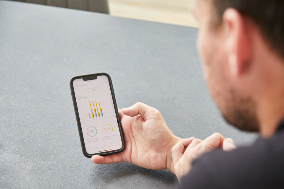Selve styringen og overvågningen af anlægget beskriver Sarah som ”virkelig brugervenlig”. Det foregår via en app på telefonen, hvor en lille grafik i realtid viser, hvor meget strøm anlægget producerer, hvor stor en andel der går til husets forbrug, hvor meget der er på batteriet, og hvad der bliver sendt ud på elnettet. Fra solen går ned, til solen står op, bruger familien oplagret strøm fra batteriet. Når solen begynder at skinne op ad morgenen, begynder anlægget selv at oplade batteriet igen.