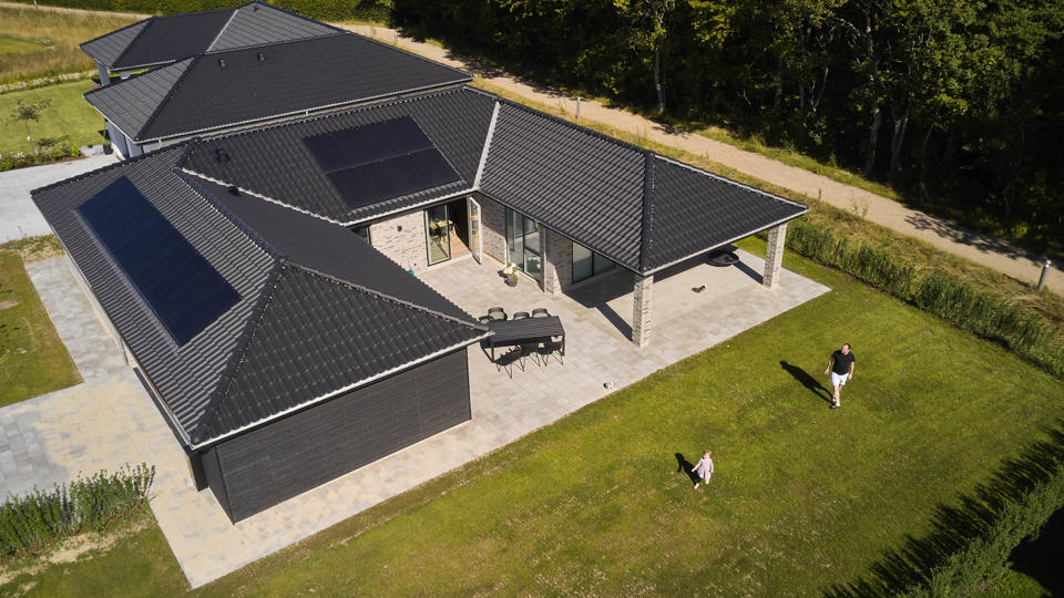 ”Men jeg er glad for, at de ligger nede i taget. Det er meget pænere, end hvis det var eftermonteret,” tilføjer Sarah om panelerne, der som standard er integreret i tagfladen hos Milton Huse.